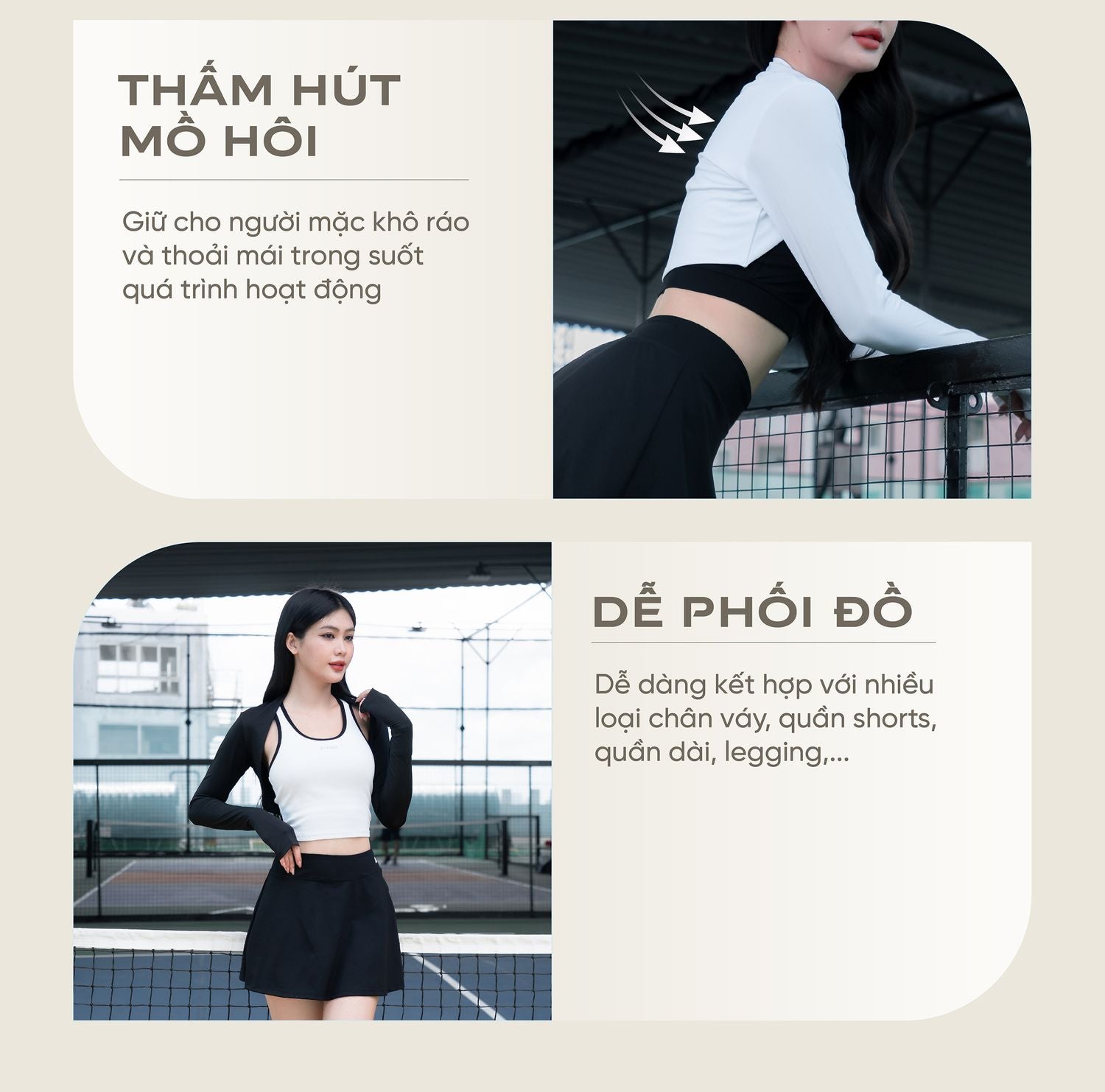 - Thiết kế dáng lửng, dạng cánh dơi hiện đại, vừa vặn và ôm gọn phần thân trên, tôn dáng thể thao nhưng vẫn tạo cảm giác thoải mái cho người mặc khi di chuyển và vận động.